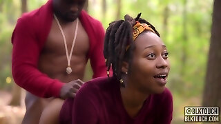 Slim ebony chick Becky Cohen strokes her figure and dreams of a big white dick