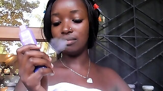Ebony bitch smoking cigarette while enjoying lesbo sex