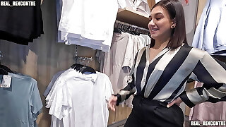A Pretty French Doll Gets Ass Fucking Fucked In A Fitting Room By Two Of Her Brother's Friends