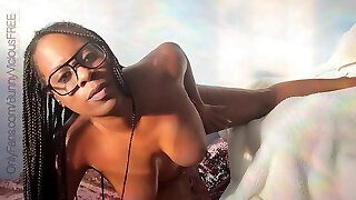 Ebony teenage Sarah Banks finally gets to ride a hard-on outdoors